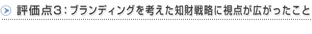― 評価点の3番目、「ブランディングを考えた知財戦略に視点が広がったこと」とはどのようなことでしょうか?